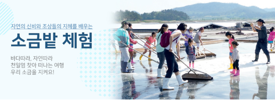 햇빛에 반사되는 소금밭 풍경이 인상적이다.